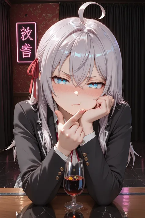 (Shaking her silver hair that shines like snow, her blue eyes gleam sharply as she proudly turns her head)