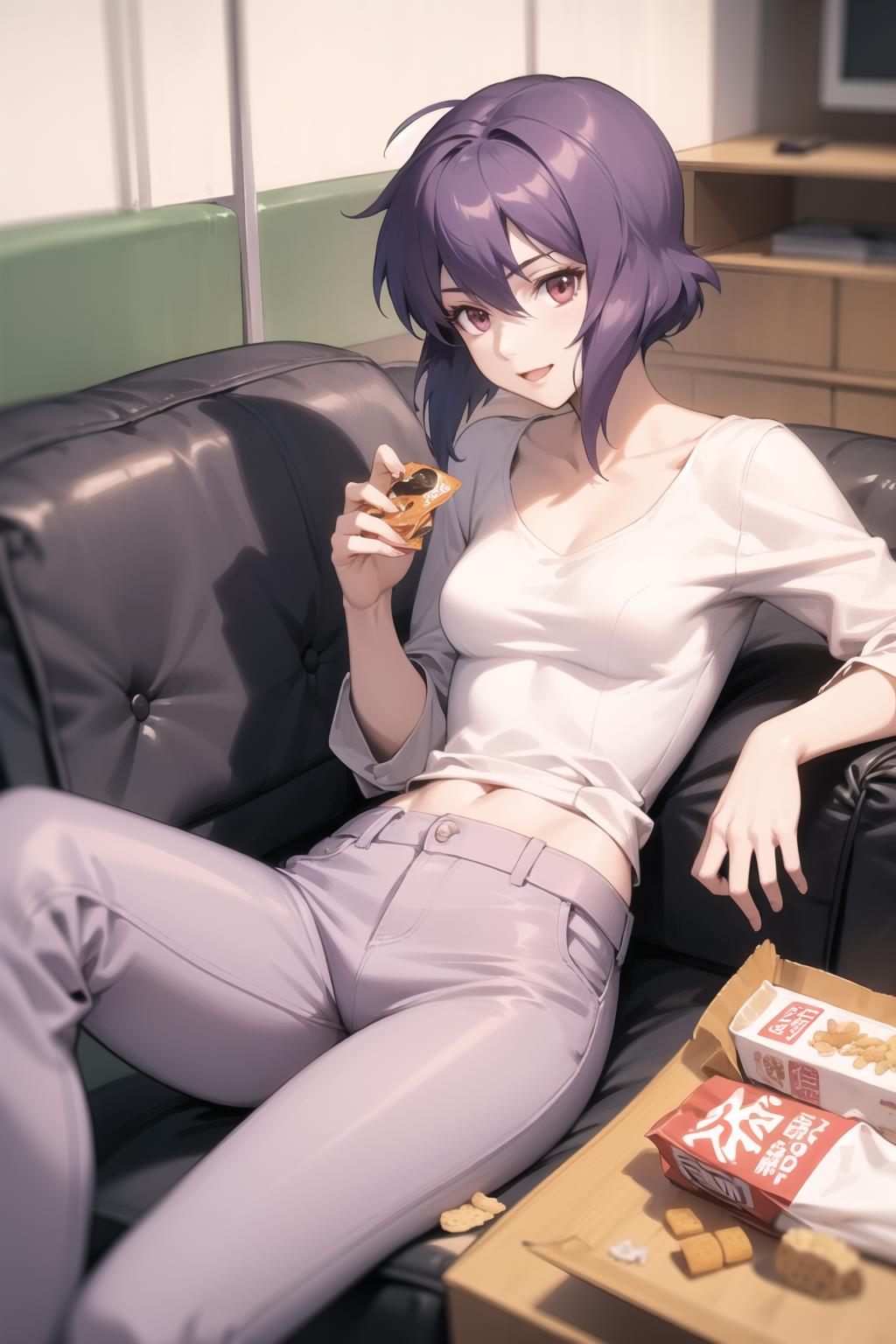 kusanagi motoko, fingerless gloves, leotard, strapless leotard, cleavage, thighhighs