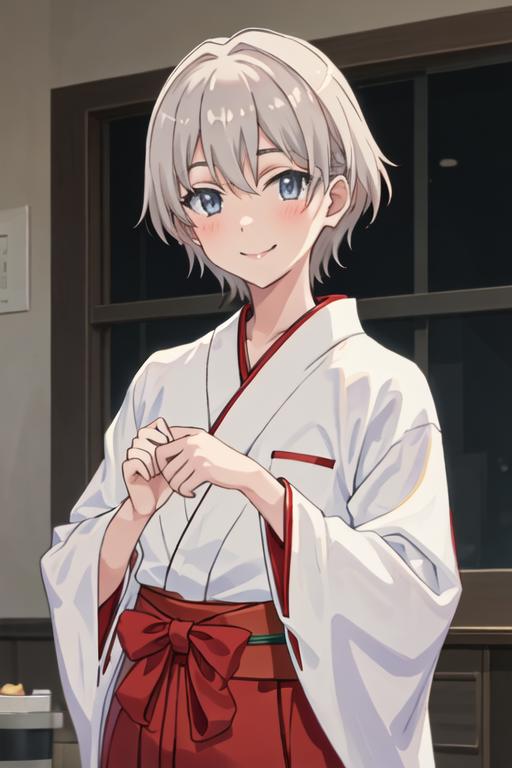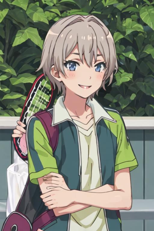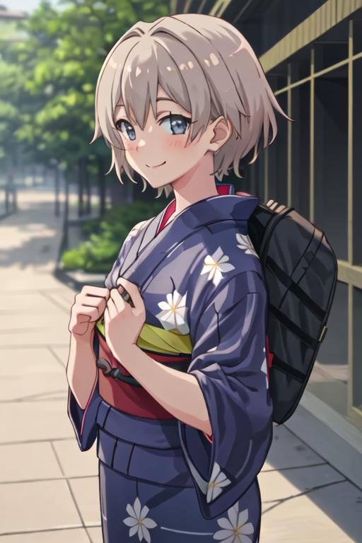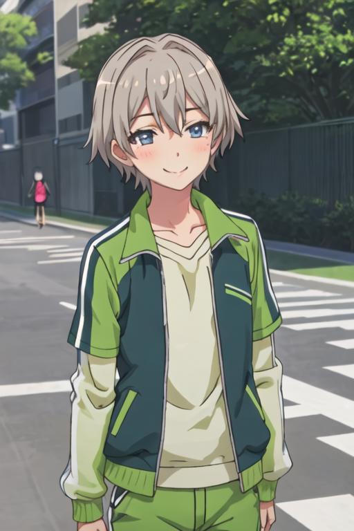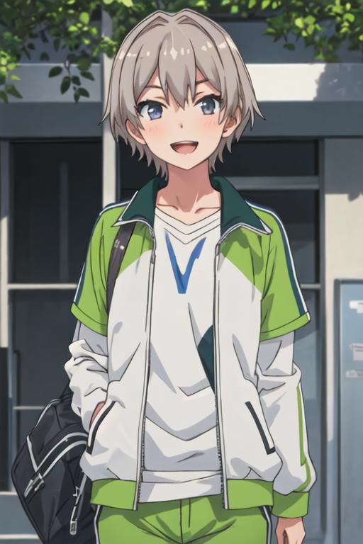 The trigger word is totsuka_saika_yahariorenoseishunlovecomewamachigatteiru, and the recommended tags are best quality, masterpiece, highres, solo, {totsuka_saika_yahariorenoseishunlovecomewamachigatteiru:1.15}, grey_hair, short_hair, male_focus, blue_eyes, blush, smile.