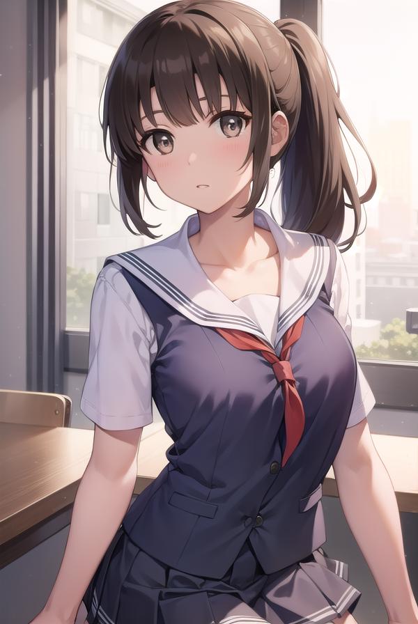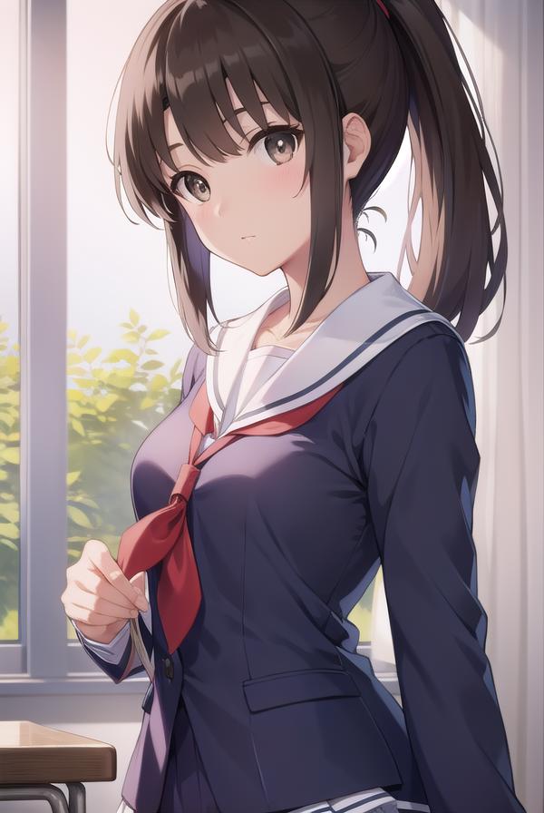 megumi katou, brown hair, long hair, ponytail, (brown eyes:1.7),