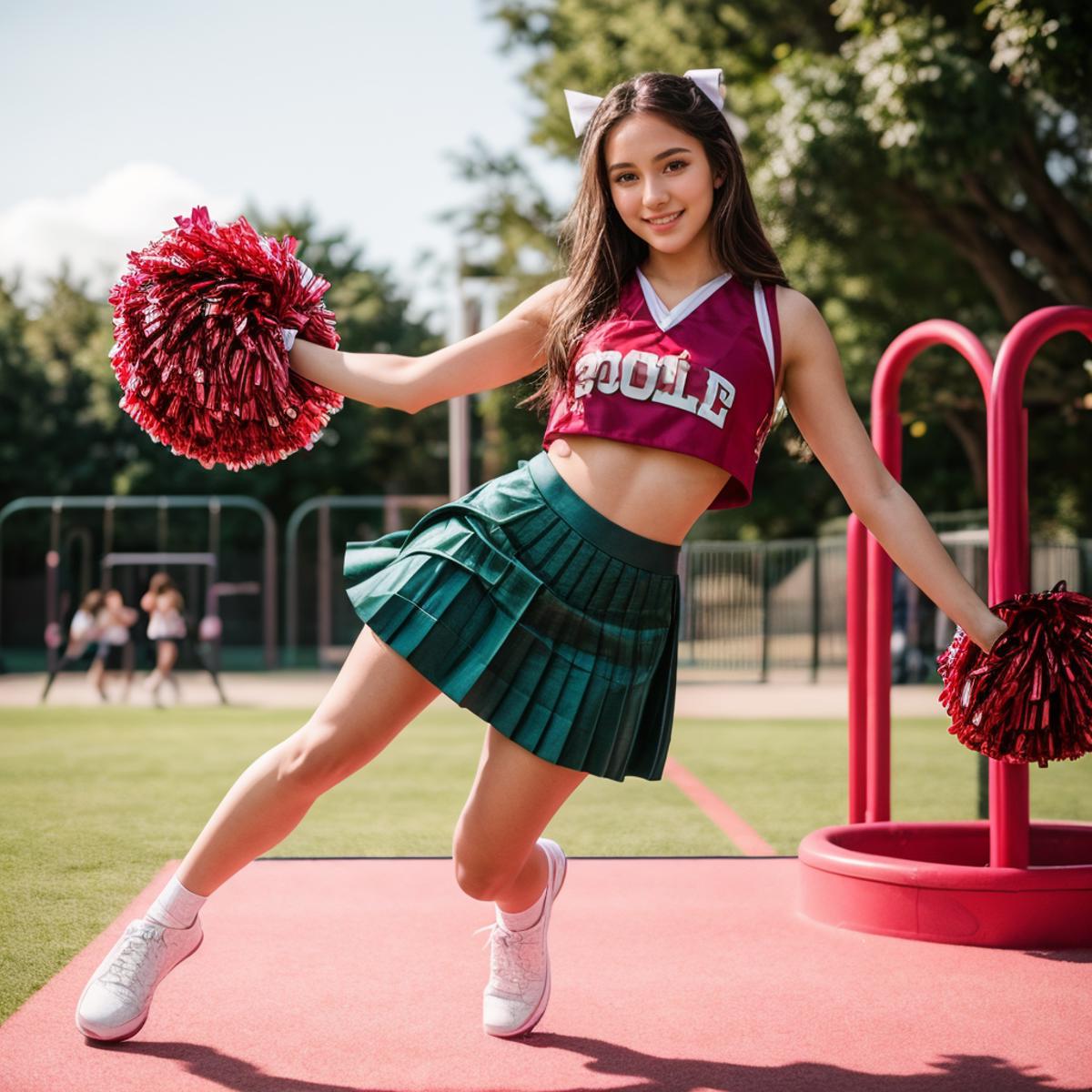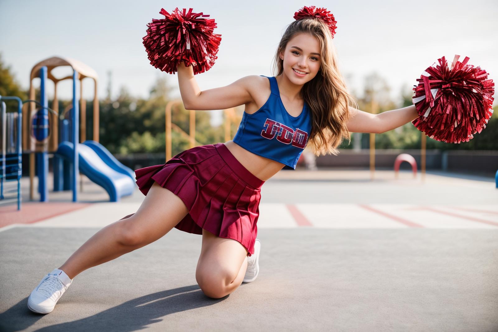 Prompt: cheerleader,pom pom \(cheerleading\),crop top,pleated upskirt,