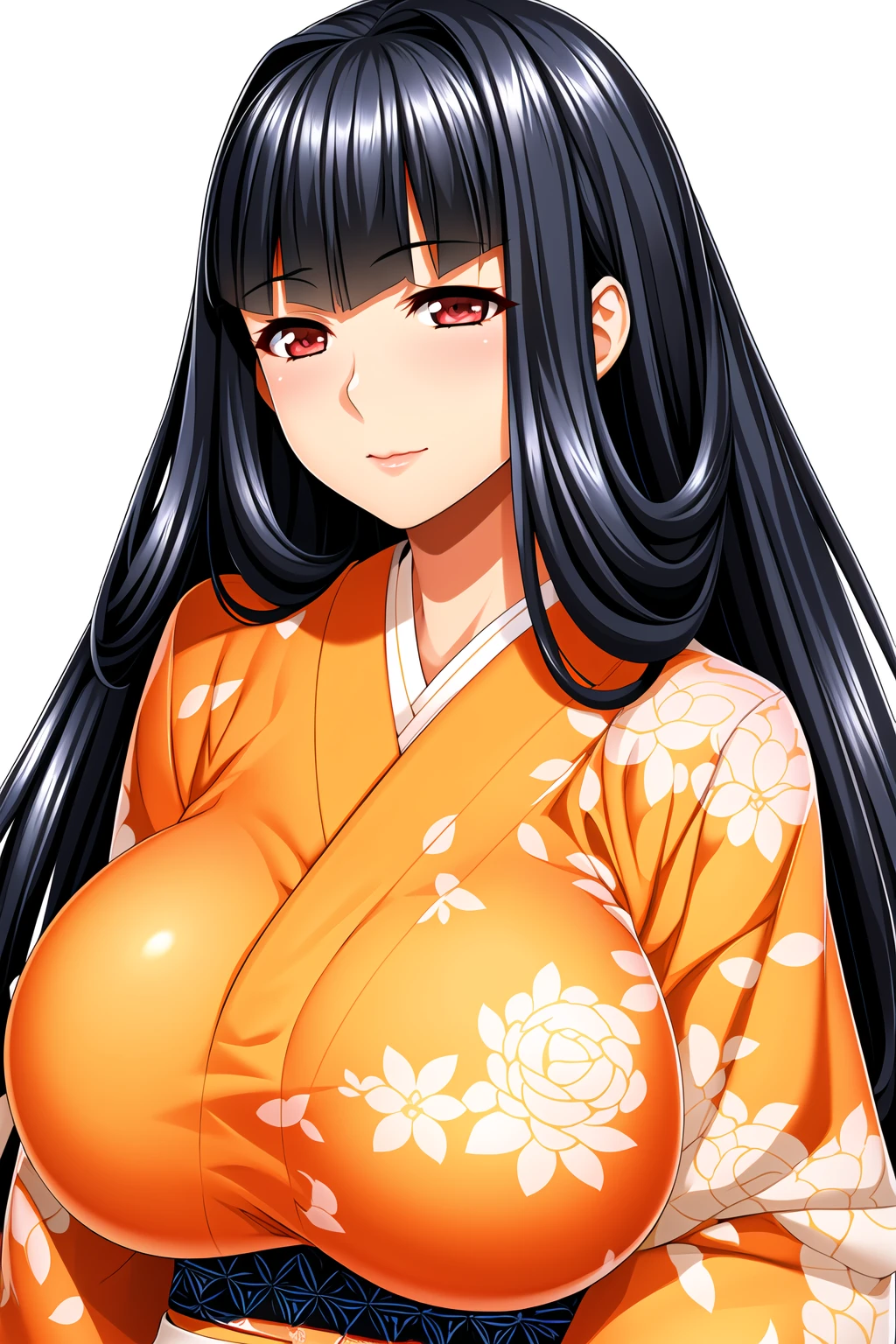 Orange kimono,white rose print,japanese clothes,wide sleeves,long sleeves,
