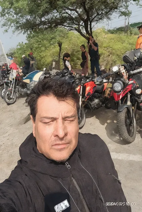 arafed man riding a scooter clasic on a road with a colorful smoke trail