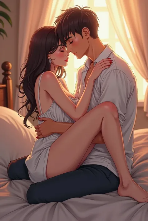 Anime man and woman on bed