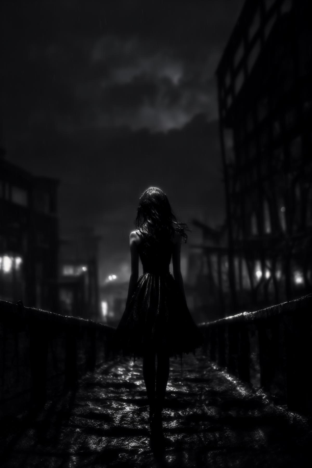 My model primarily trained on two segments of content. The first segment focuses on lighting and shadow in a monochrome style. The second integrates the monochromatic lighting and shadow with the following elements: rain, water, abandoned cities, forests, and a girl in a jacket