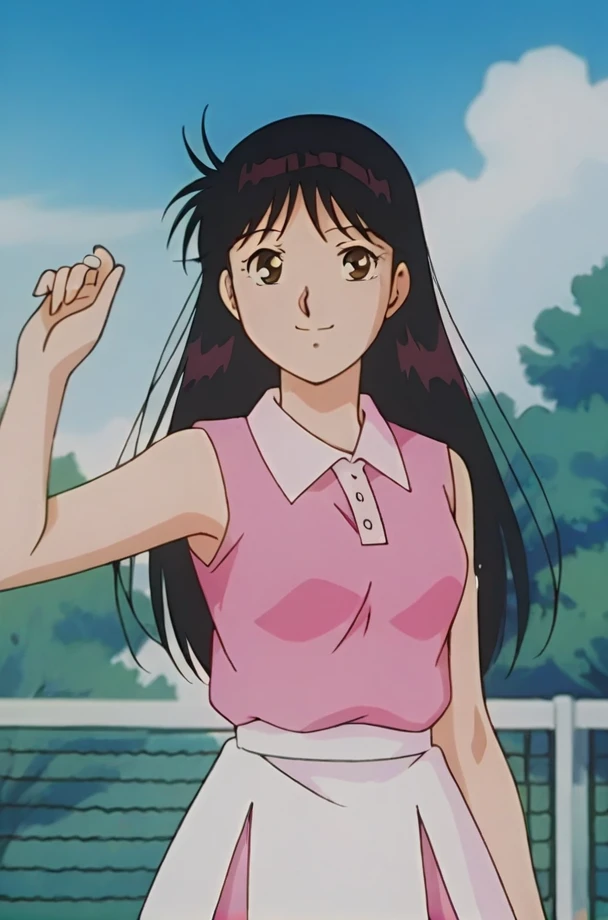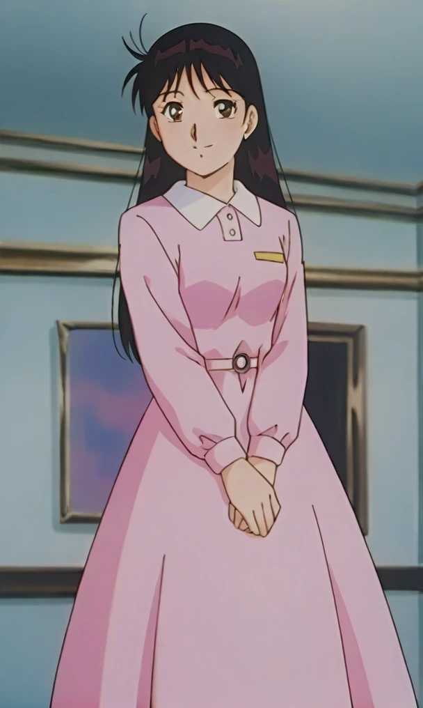 anime screencap,anime coloring<lora:Nanase Miyuki - Kindaichi Sonen no Jikenbo v2.1:0.8> retro artstyle, 1girl, brown eyes, black hair, long hair ,Close mouth