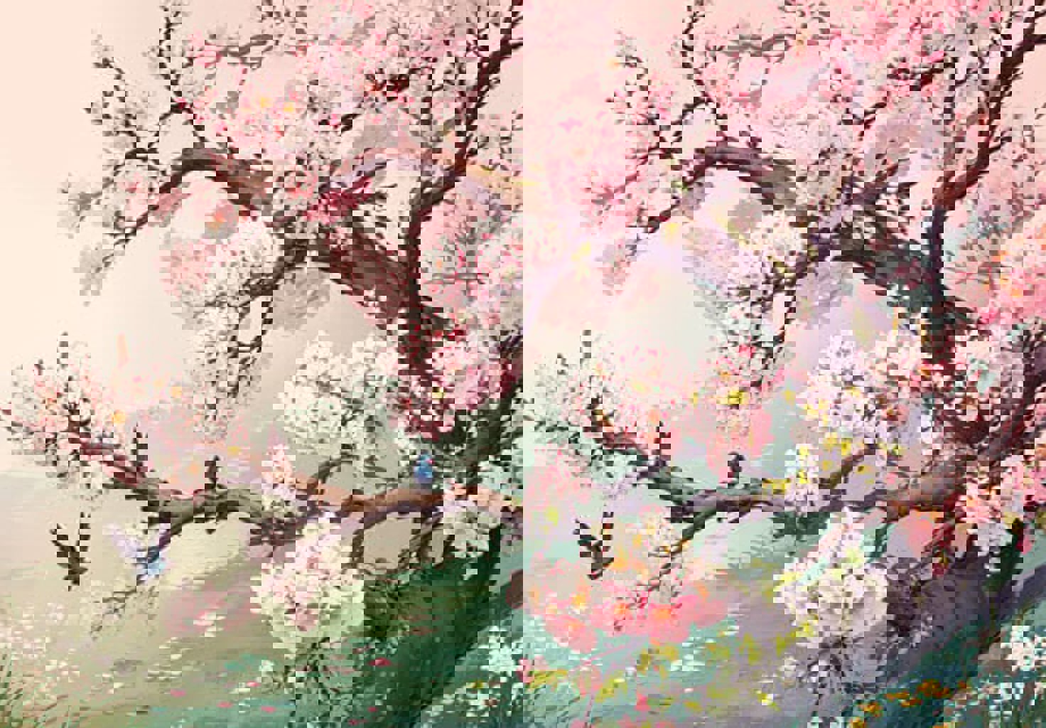2)也可以作为花类画风增强器,会增强“花朵”、“树木”、“鸟”的质感,推荐权重0.6左右。