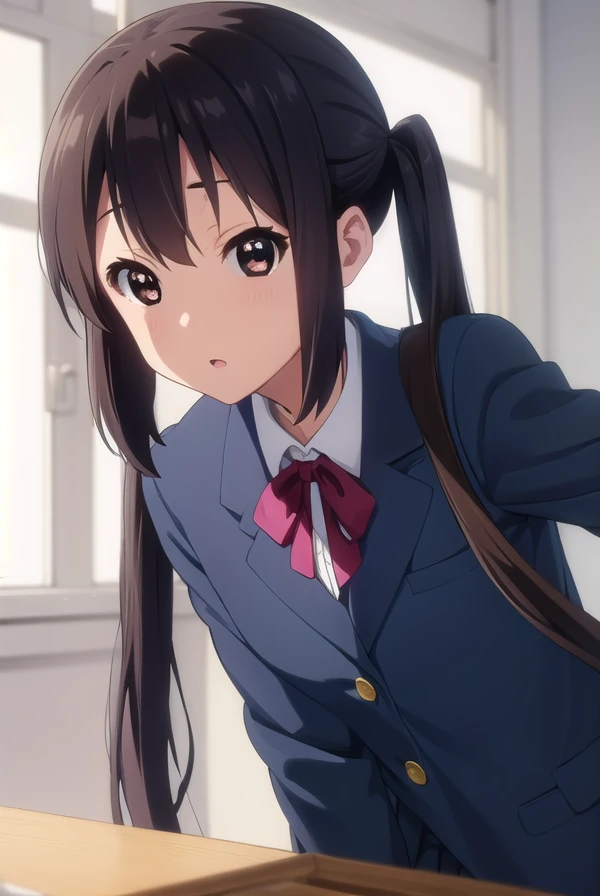 azusa nakano, black hair, (brown eyes:1.5), long hair, twintails,