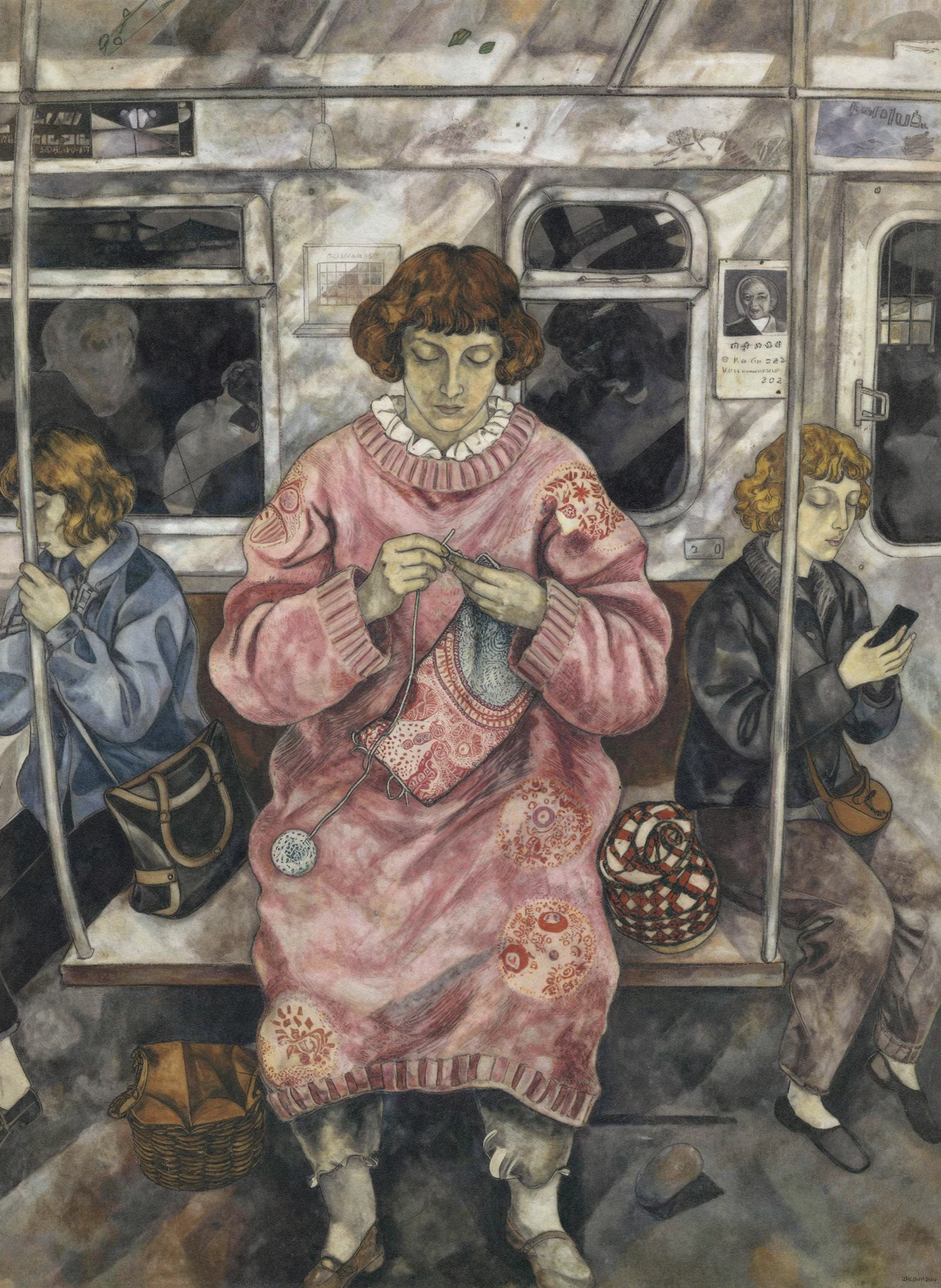 I'm still experimenting with this for myself; because his work is so abstract and 2d, I'm finding it does best with simple prompts to allow it to be expressive: "Woman with flowers" rather than "woman with flowers in forest sitting on blanket"