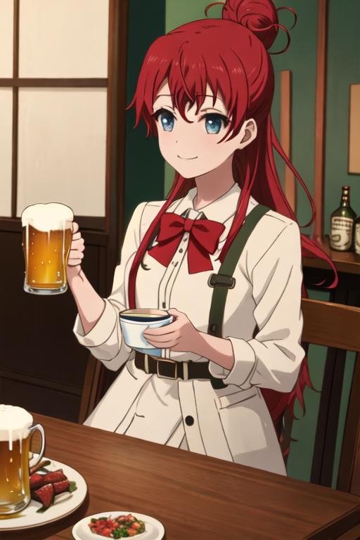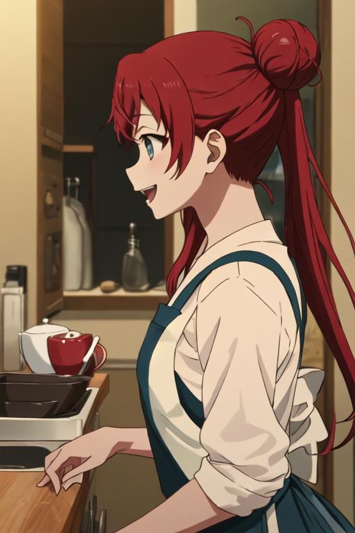 The trigger word is sakaki_shizuka_shirobako, and the recommended tags are best quality, masterpiece, highres, solo, {sakaki_shizuka_shirobako:1.15}, red_hair, long_hair, single_hair_bun, blue_eyes, hair_bun.