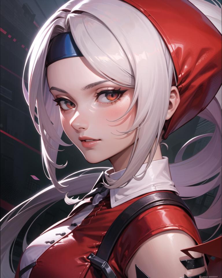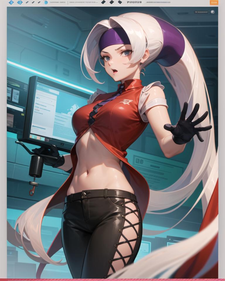 foxyms, headband, gloves, pants, pauldrons, navel, shirt, sword, dark skin (in some versions she has darker skin up to you to use)