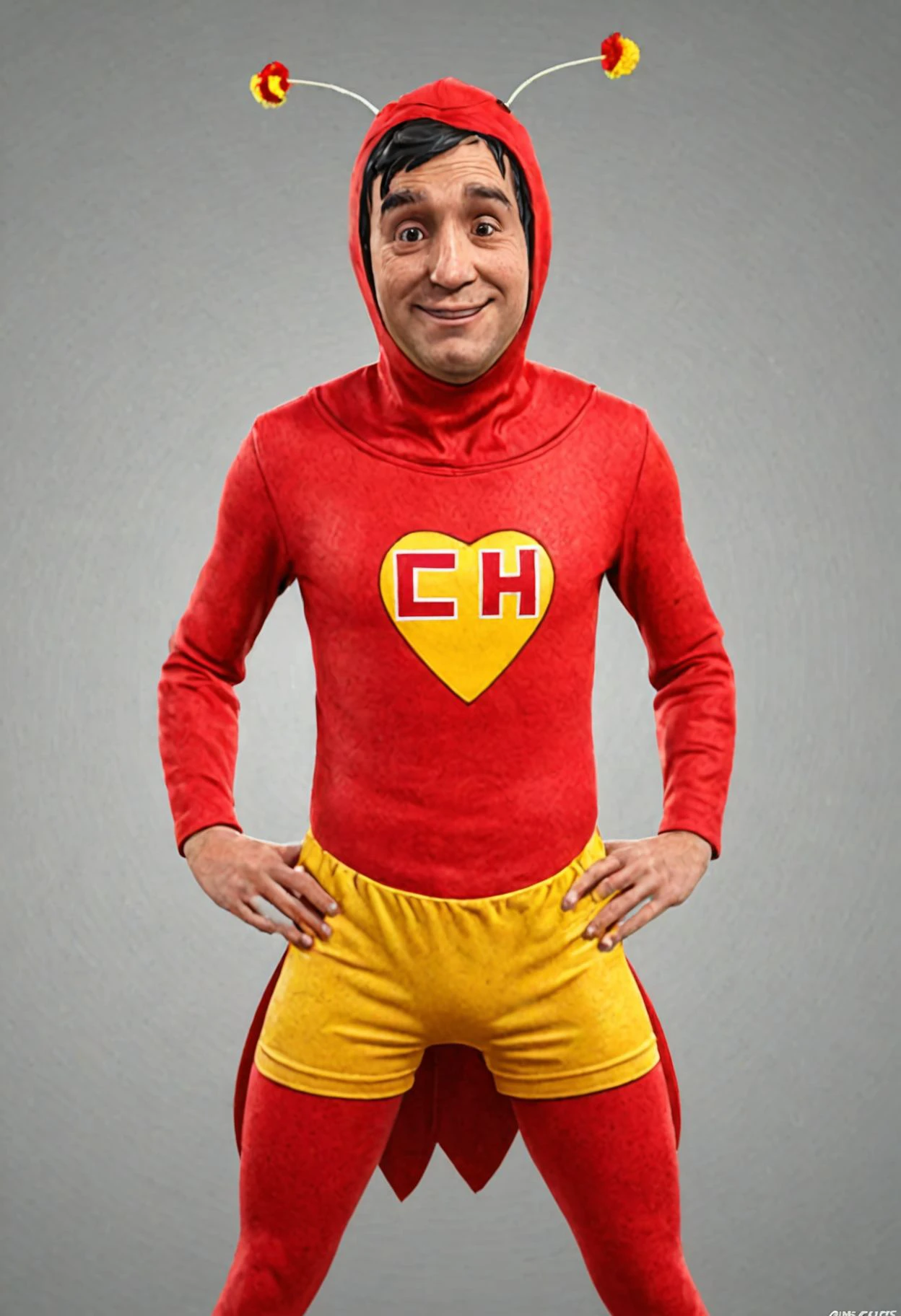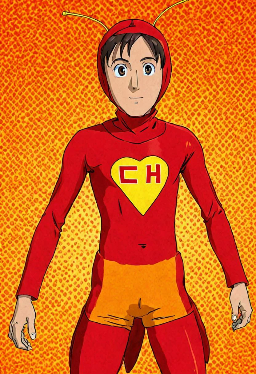 Keywords: CHAPULÍN COLORADO, MALE FOCUS,1BOY, SOLO, HOOD,BLACK HAIR,PARODY