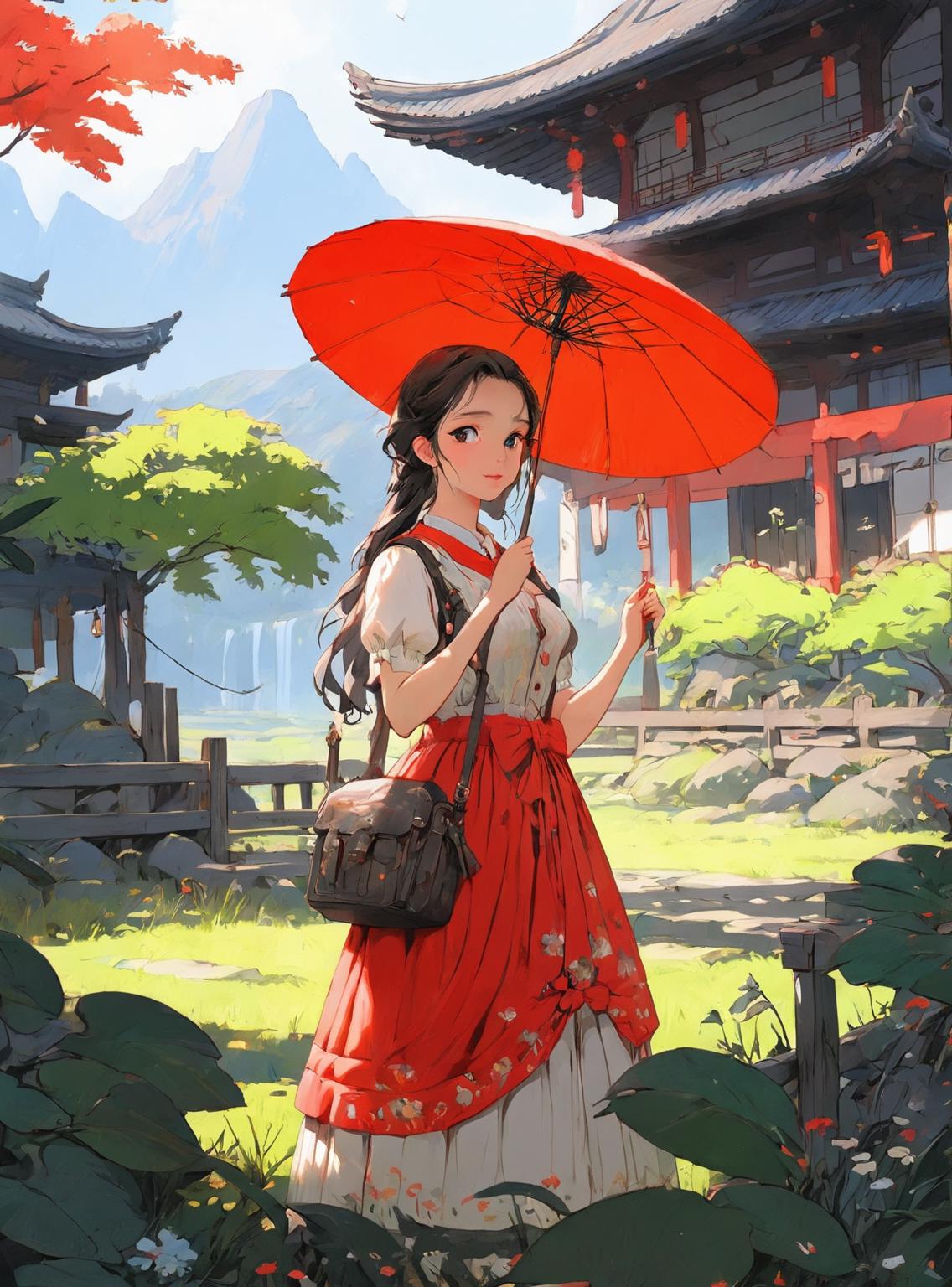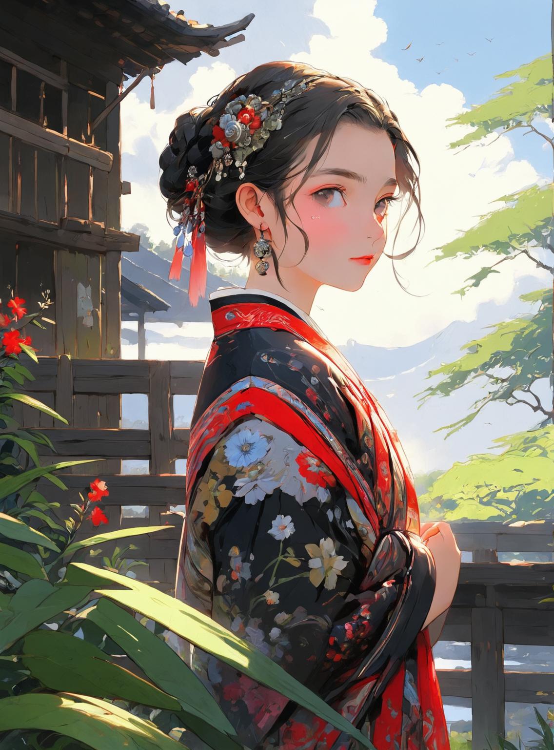 本模型在正常情况下会出中国风相关的图,在其他提示词下可以丰富细节