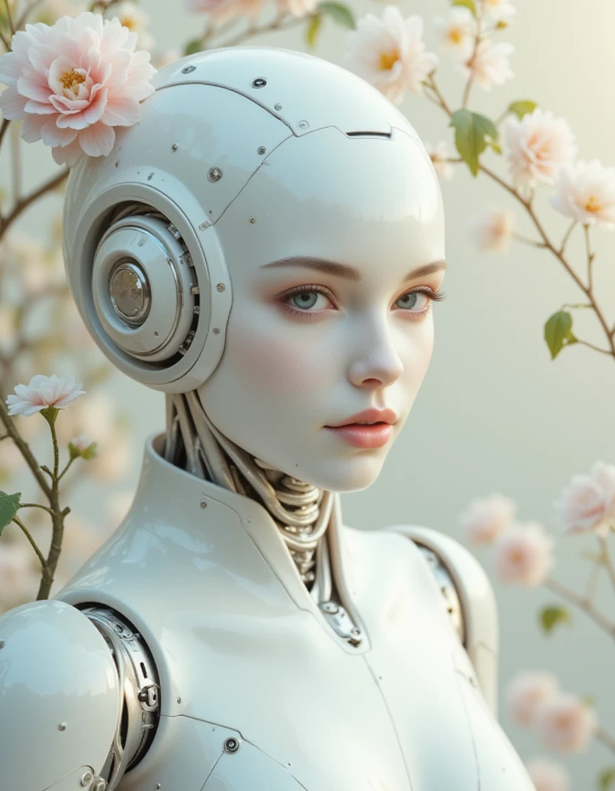 أدخل موضوعًا وأنشئ صورة بأسلوب المفهوم. <ب ر>امتزاج شعري بين التصميم السيبراني الأنيق والجمال الطبيعي المزدهر, حيث التكنولوجيا والطبيعة تلعبان في انسجام تام.