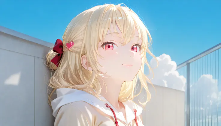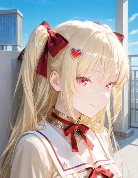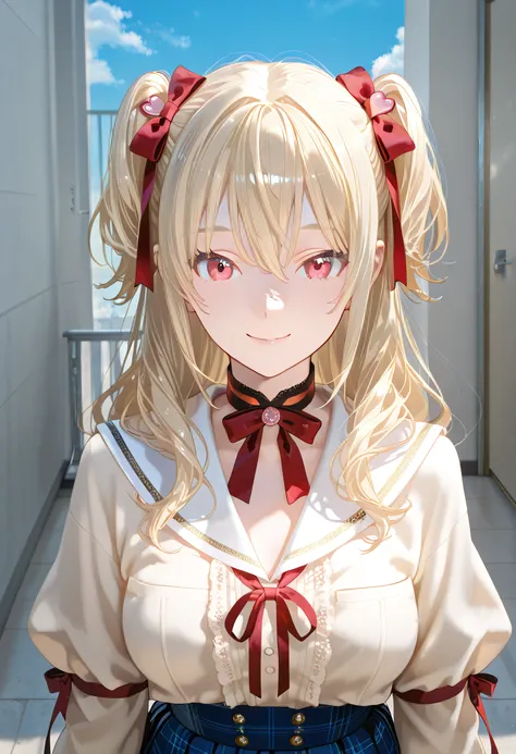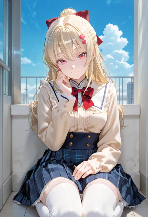 أصبح فتاة مدرسة ثانوية أنمي تتظاهر على الشرفة لالتقاط صورة جمالية.
