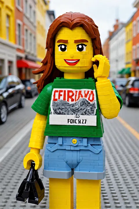 تحويل المشهد الواقعي إلى عالم مصغر من لعبة الليغو ذات الحركة المنسقة,مدينة、يتكون الناس والعناصر الطبيعية من قطع لعبة,بنية تركيبية متناغمة مع المنطق الديناميكي。<ب ر>
