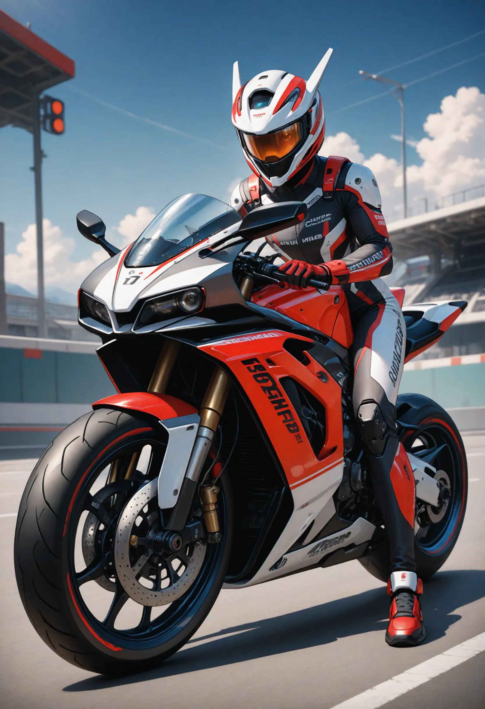 دراجة سباق مع راكب, دراجة وأزياء راكب بألوان مختلفة.