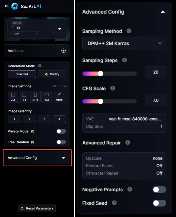 - Added the options for Sampling Method, Sampling Steps, and CFG Scale to the Flux model's Advanced Settings.