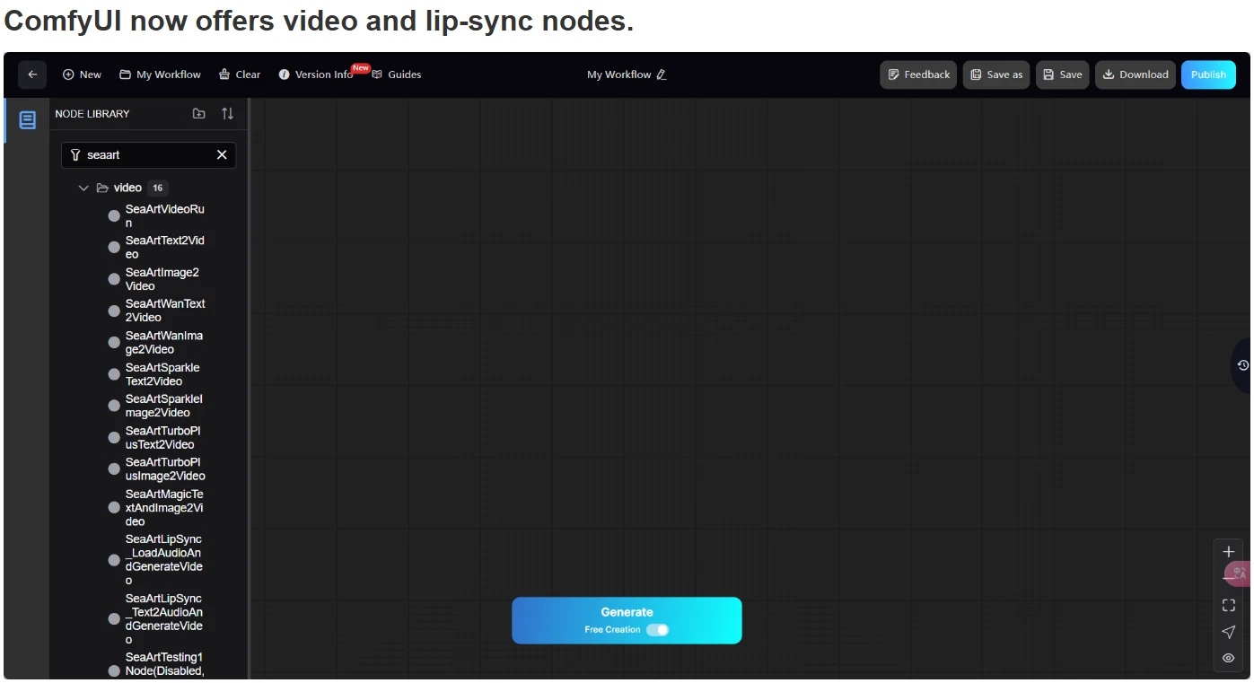 ▪ ComfyUI now offers video and lip-sync nodes. (note: these are not free)