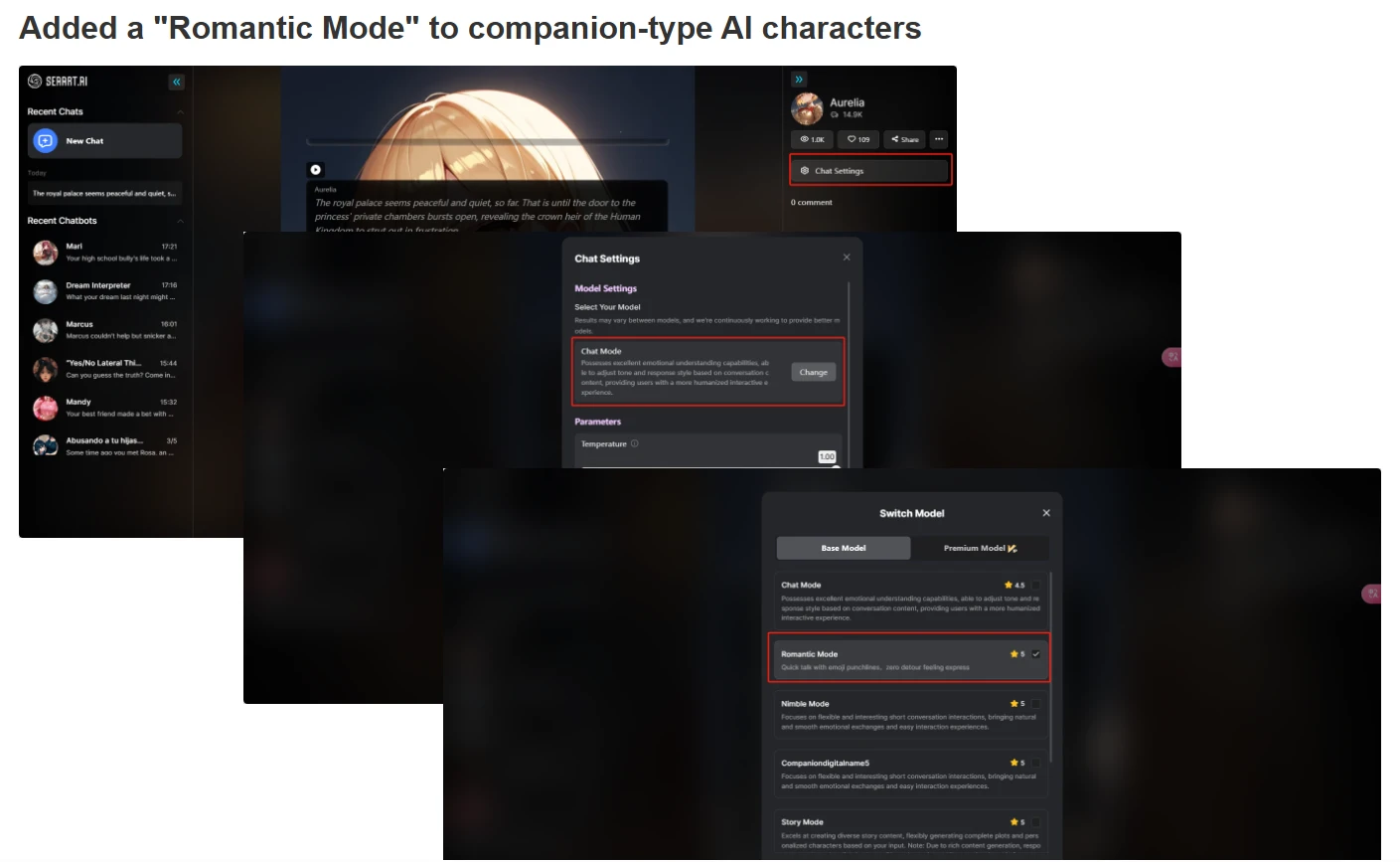 ▪ Added a "Romantic Mode" to companion-type AI characters, focusing on short chats.