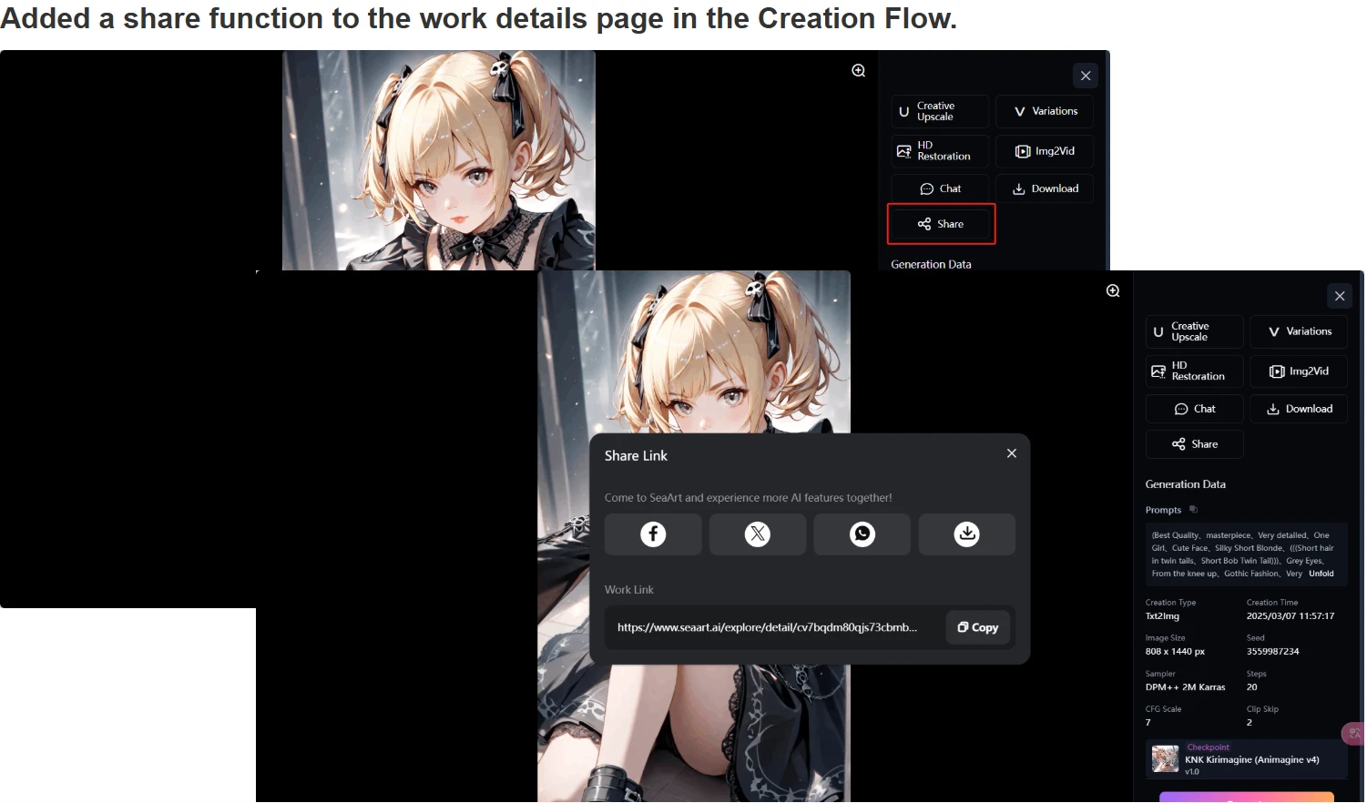 ▪ Added a share function to the work details page in the Creation Flow.6. Other Optimizations