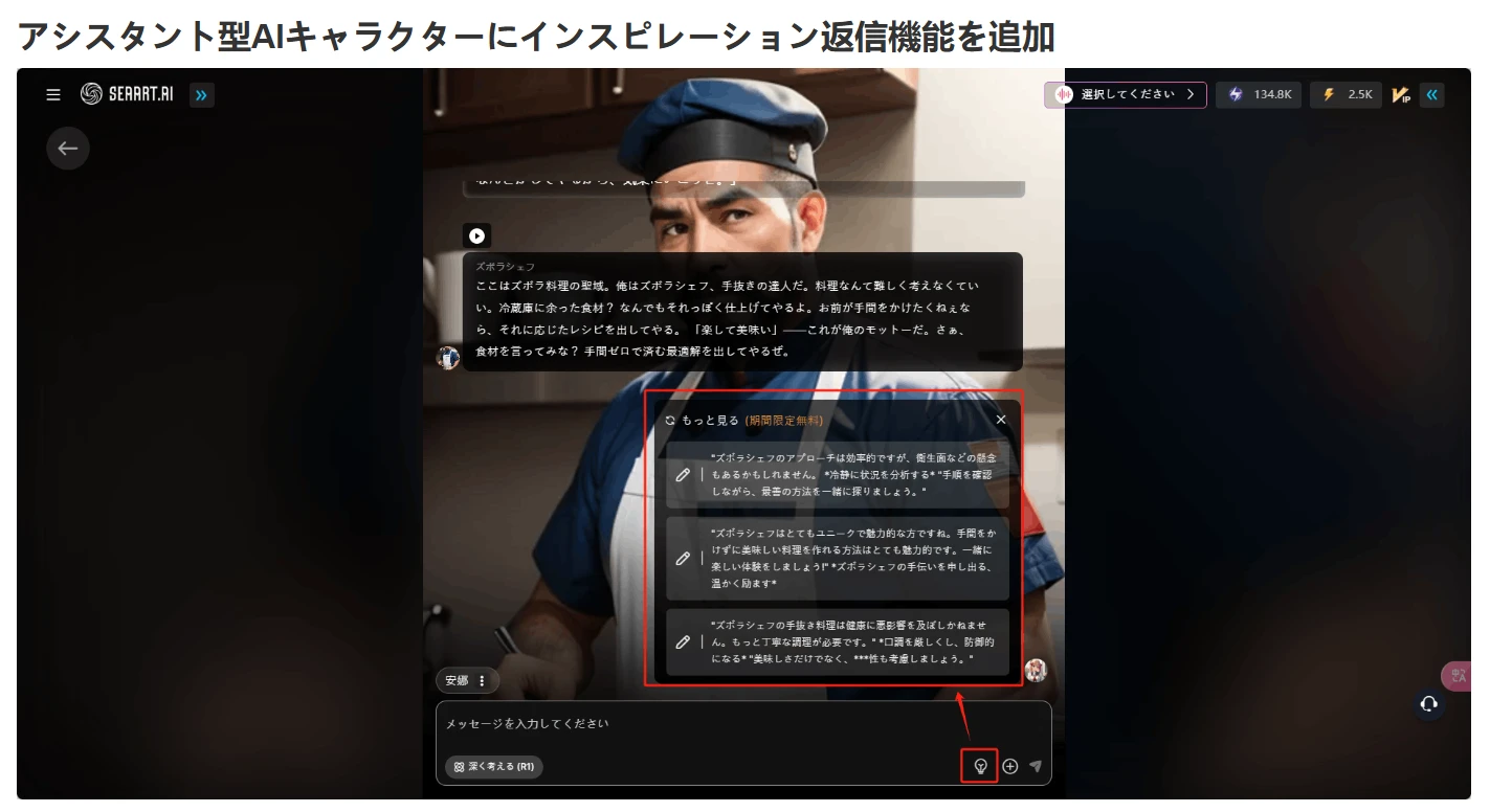 ▪ アシスタント型AIキャラクターにインスピレーション返信機能を追加