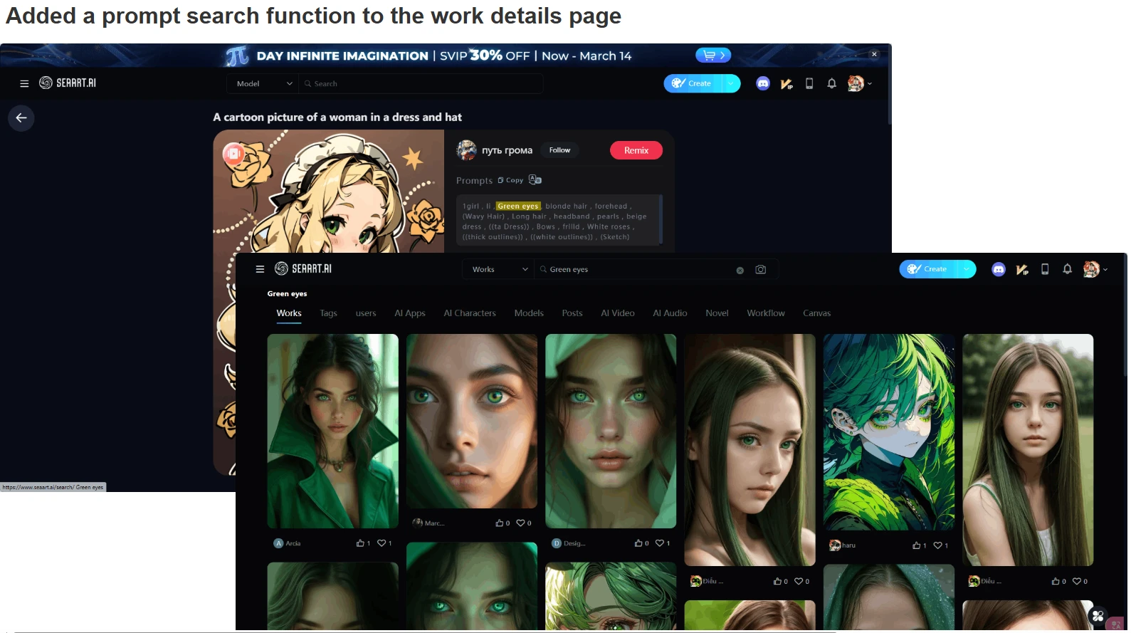 ▪ Added a prompt search function to the work details page: Hover over the prompt section to quickly jump to related searches.