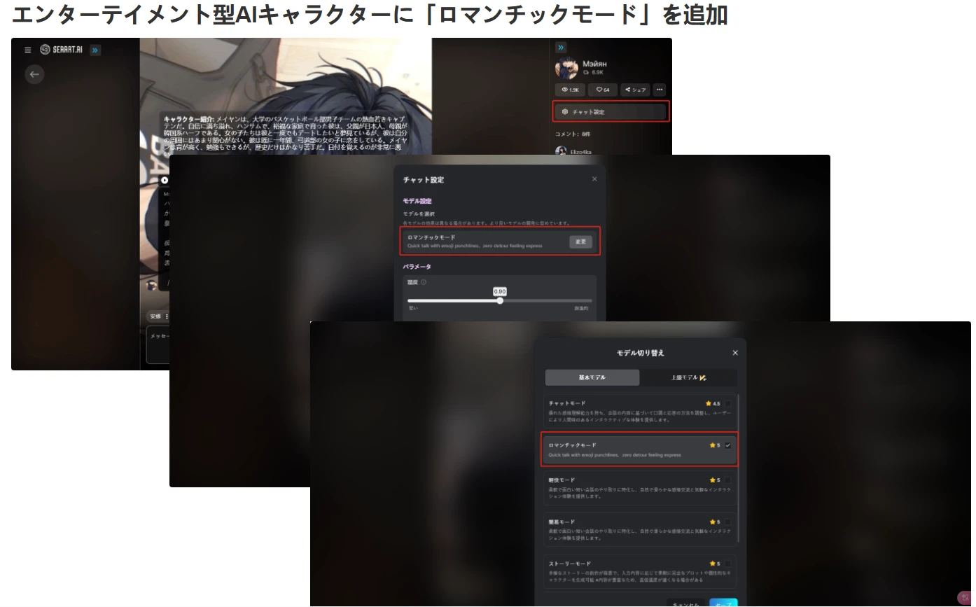 ▪ エンターテイメント型AIキャラクターに「ロマンチックモード」を追加:短い会話に特化