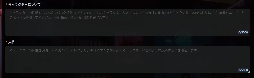 ユーザーとの親密度を設定。例:小説代筆キャラが「突然、自身の代表作(実は二人の子供時代の脱走物語)について語り出す」。