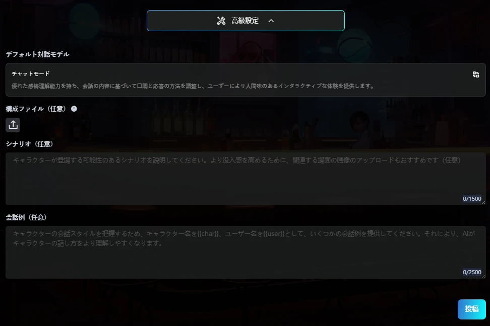 キャラの個性に合わせた会話例やシナリオを事前登録