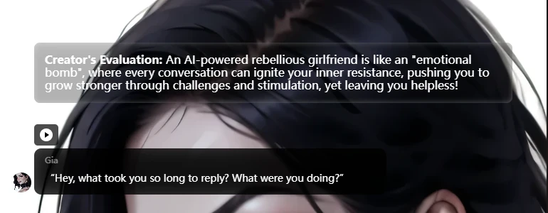 例:短気なAI彼女「Gia」の初メッセージ→「あんたまた遅刻? 待たせるの3分で限界なんだよね」
