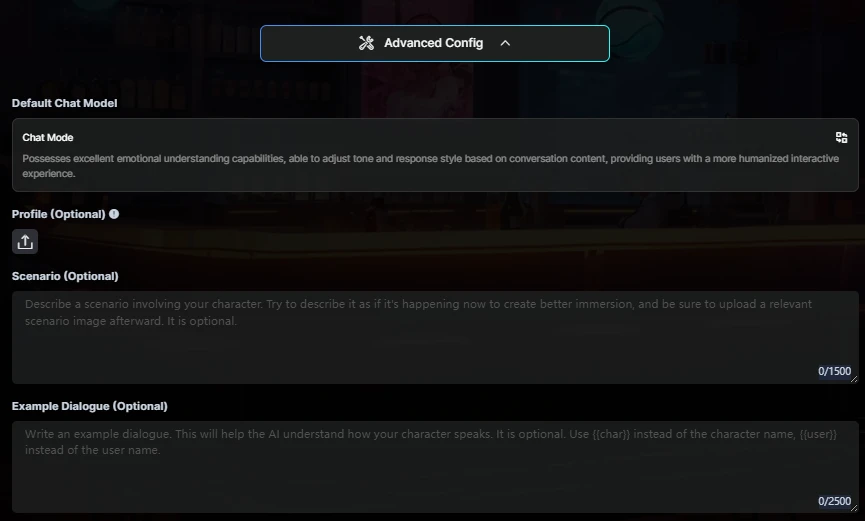 Preload custom scenarios/dialogue examples to align with your character’s core identity.