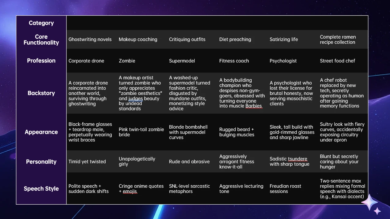 To fuel your creative freedom, here are niche core skills to spark original AI Character ideas: