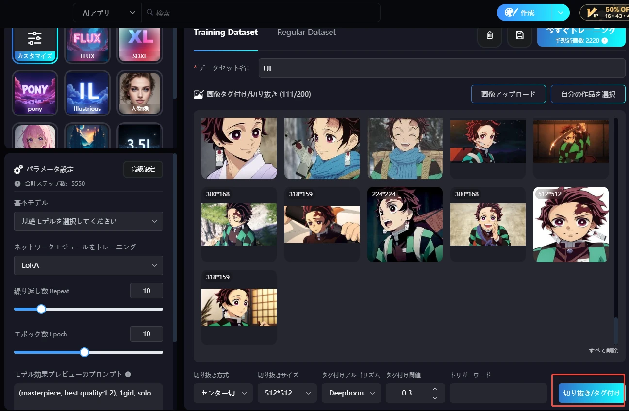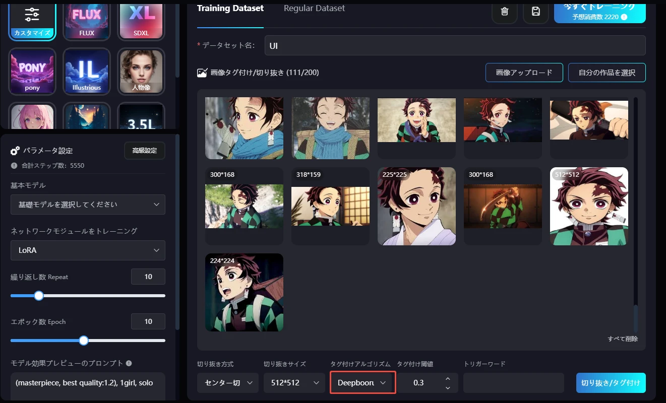 💡 最初にトレーニングするキャラクターのバージョンを明確に(異なる画風が混在しないよう注意)
