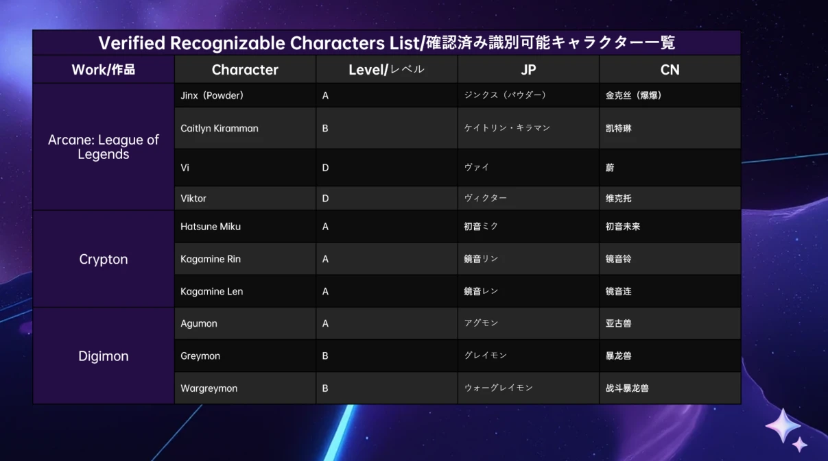 4. Verified Recognizable Character List