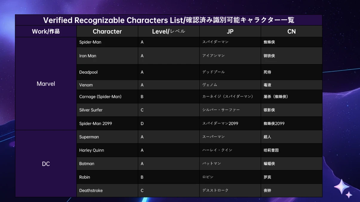 4.確認済み識別可能キャラクター一覧