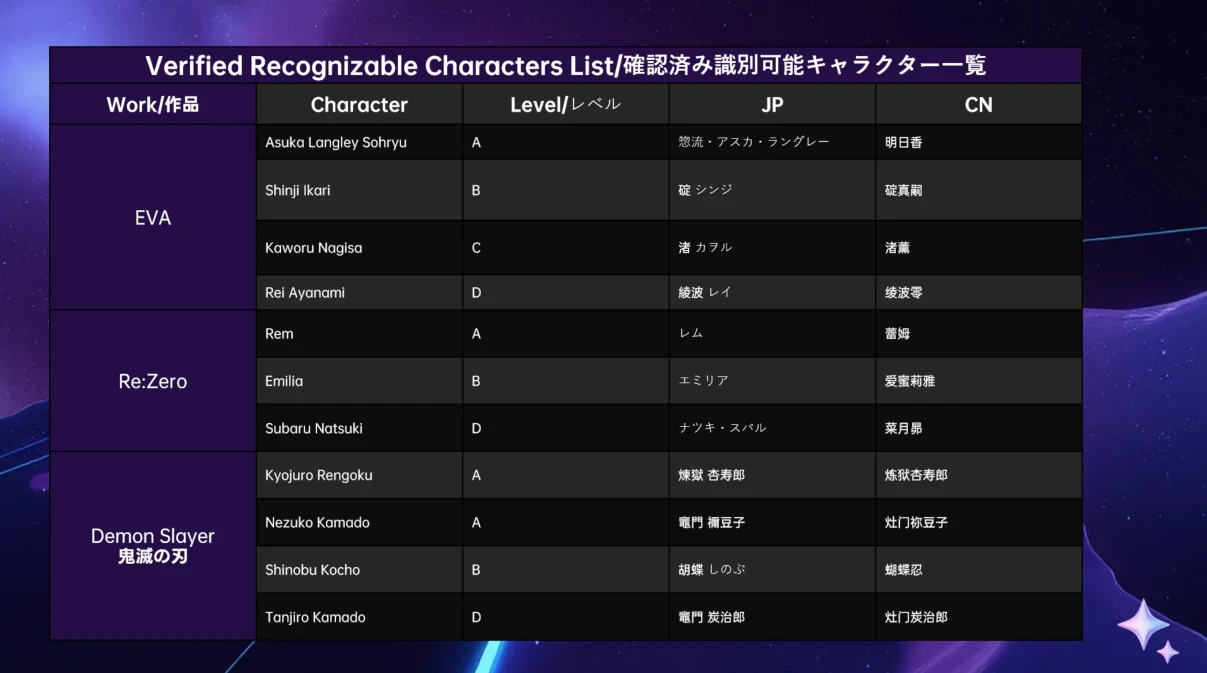 ○ プロンプト形式:キャラクター名 \(作品名),追加説明不要。