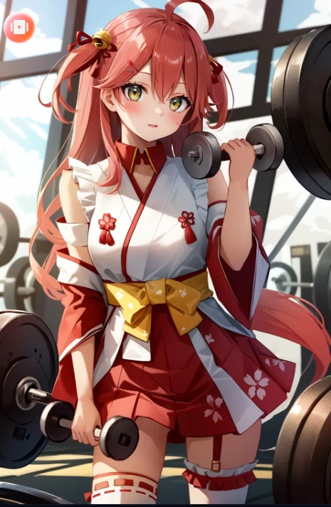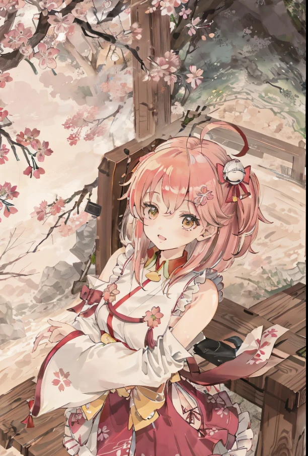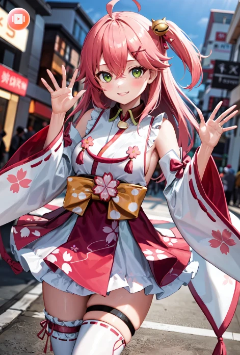 hololive Sakura Miko, pink twin tails, red hair accessories,