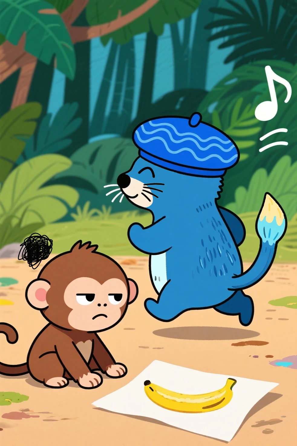 Arthur: Don't worry, little monkey! I've got just the thing! You see, my tail doesn't just draw — it brings ideas to life!