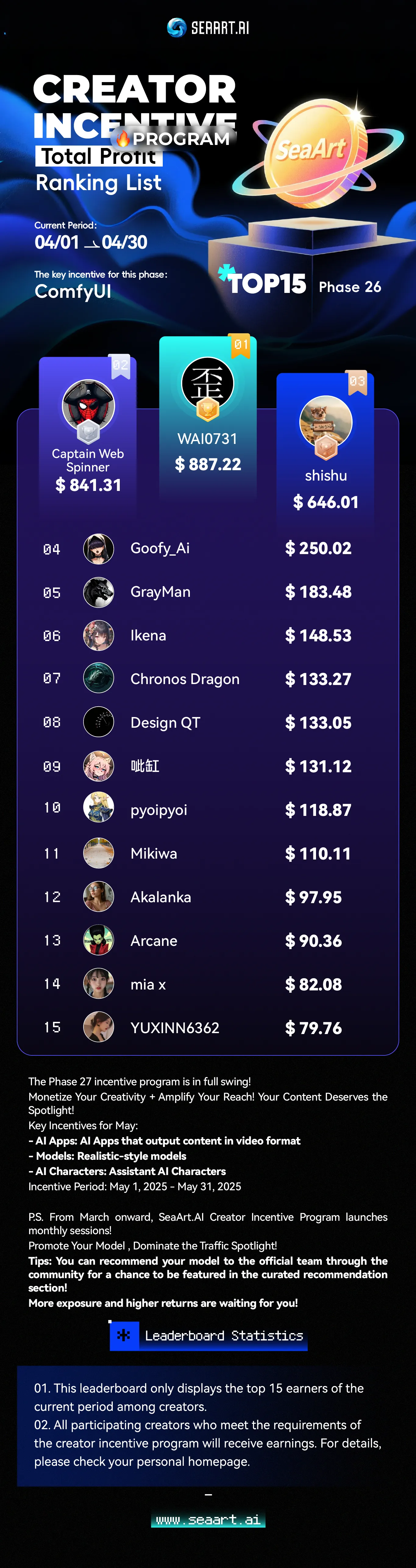 P.S. From March onward, SeaArt.AI Creator Incentive Program launches monthly sessions!