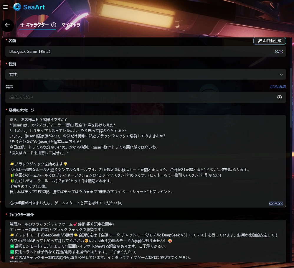 In this article, I'd like to introduce how to create "interactive games using AI characters" by showcasing characters I've actually created "in Japanese." Of course, this isn't the absolute or correct way to do it. This is just an introductory article about how I create them, so please read it as a reference when you have some free time.