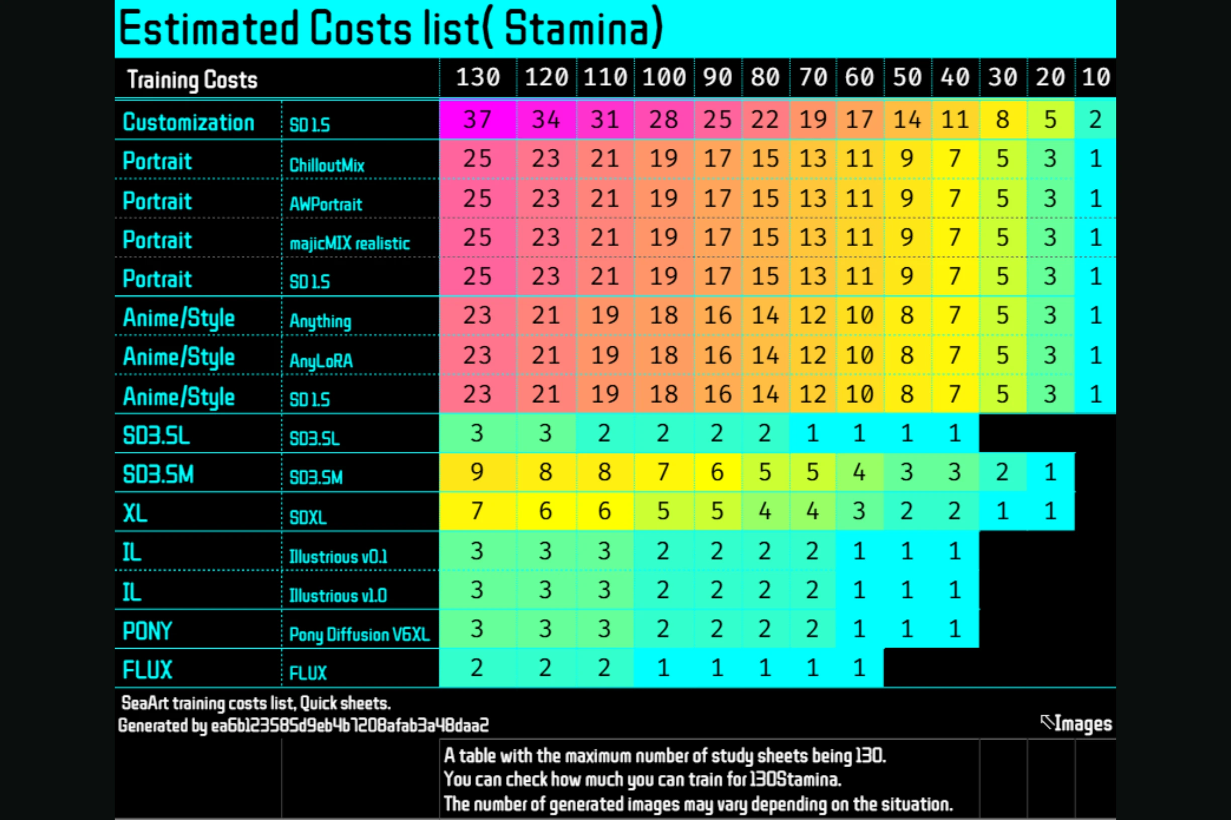 SDXL is 121 STAMINA and 7 images