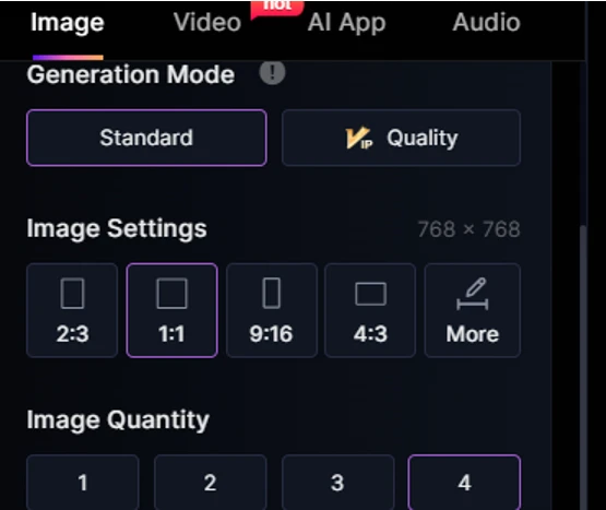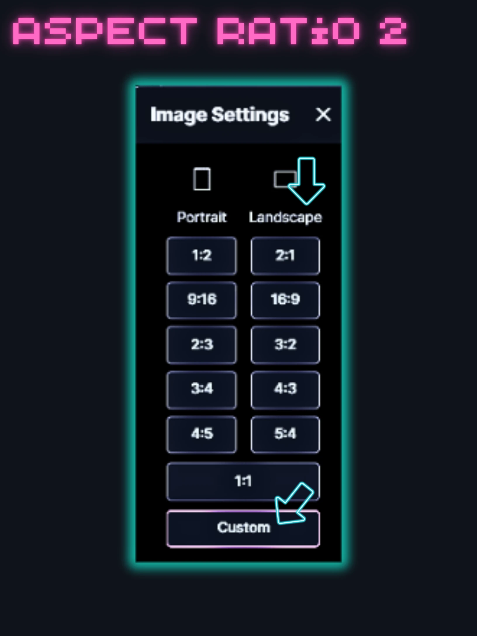 ⚒️The image size is set in the Image settings. Aspect ratio