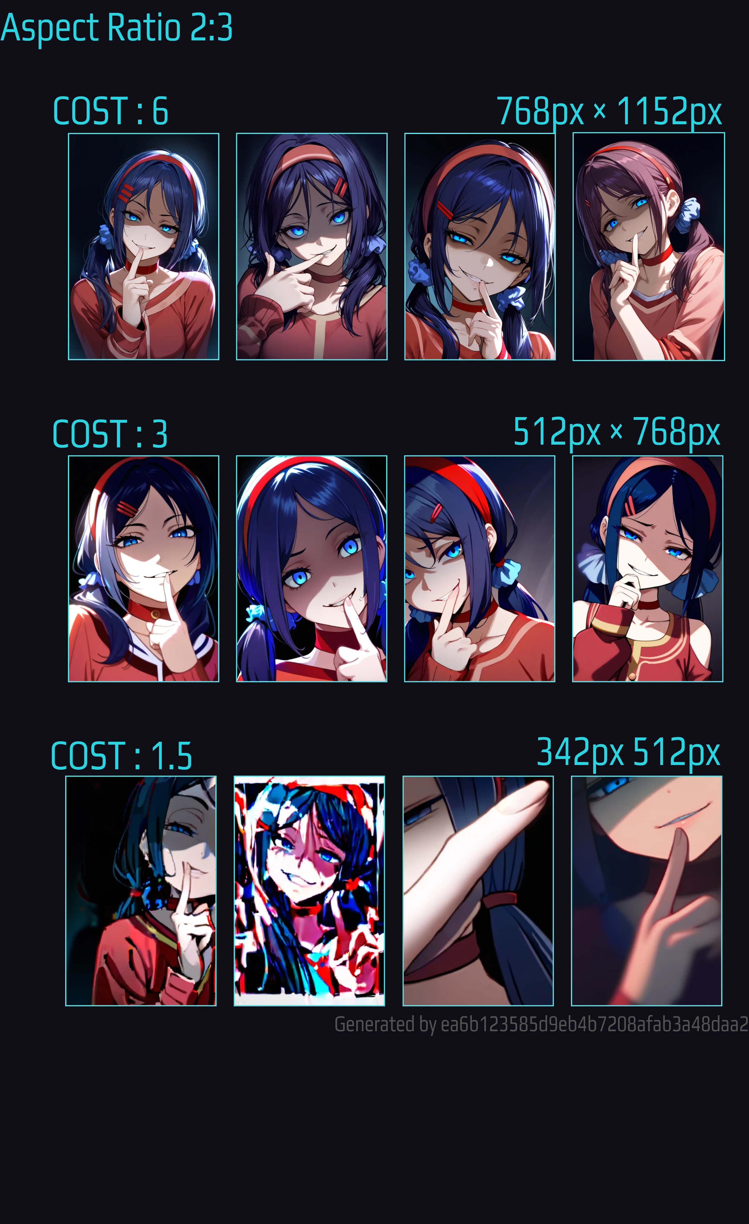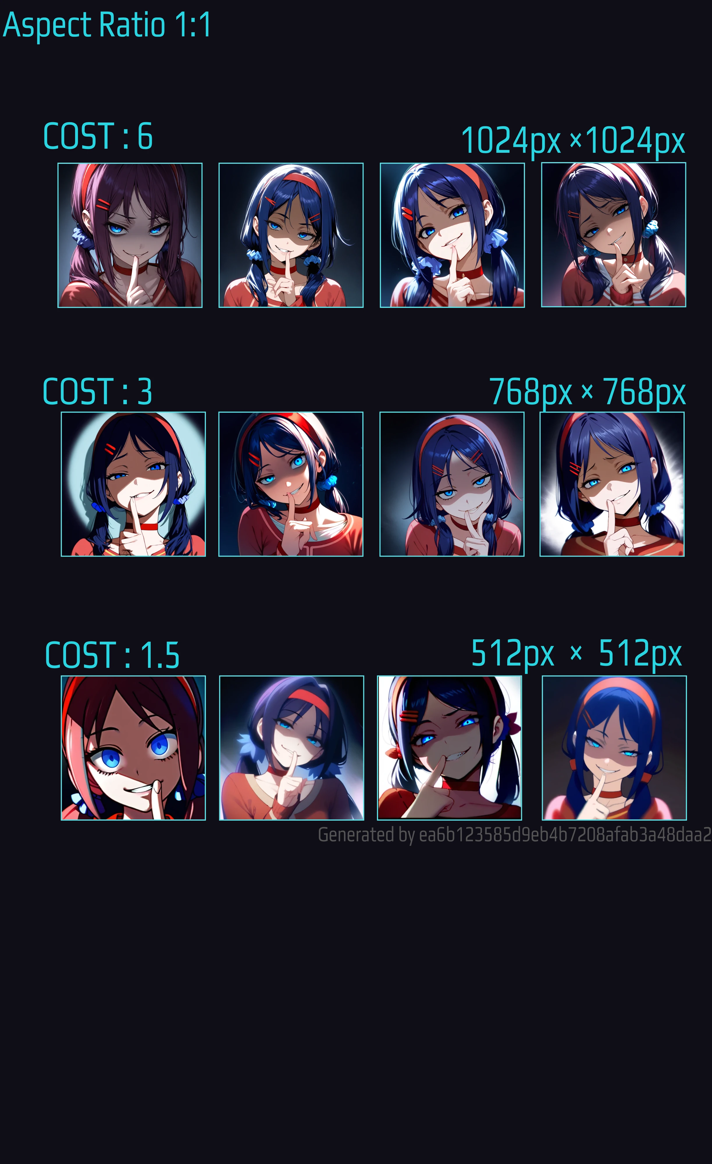 Images with a cost of 3 and 1.5 were generated according to the default aspect ratio.