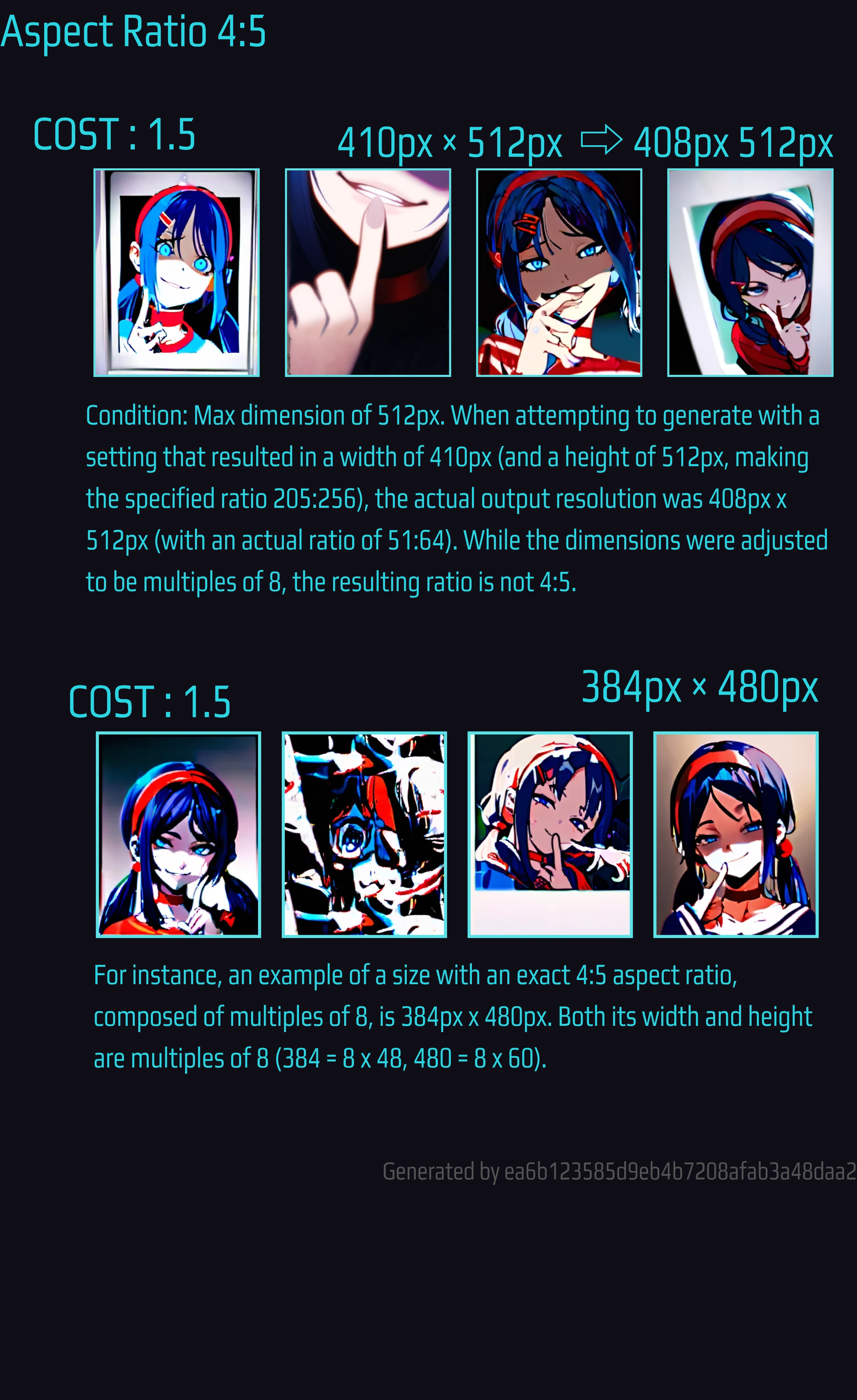 Images with previous ratios were all multiples of 8, but even if you select this 4:5, they are not all multiples of 8. The seaart system fine-tunes the numbers to multiples of 8 before generating the image.
