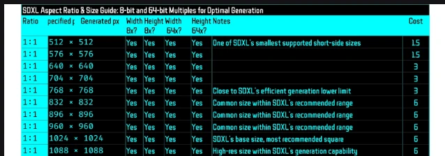 ℹ️SDXL Resolution Buckets: Sizes and Aspect Ratios
