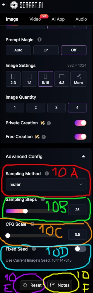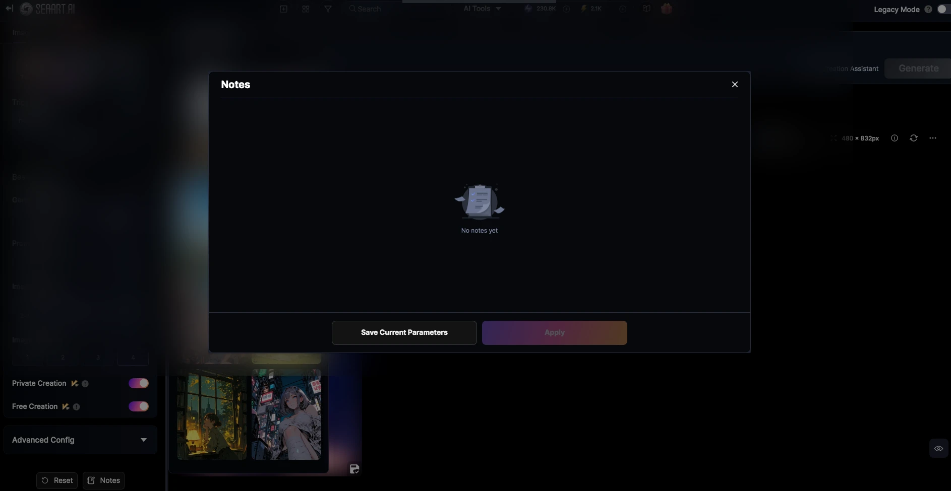 Notes is a SeaArt feature to save your own settings and prompt, or if you have already saved at least one, you can recalled it.