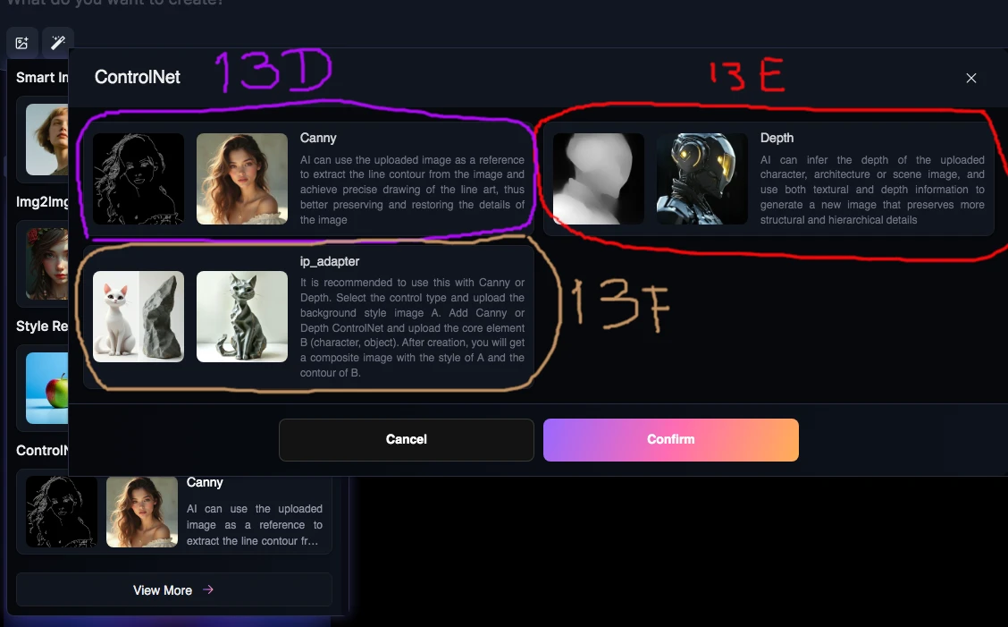 To open Depth (13E) and ip_adapter (13F) please click View More. This will open another menu.