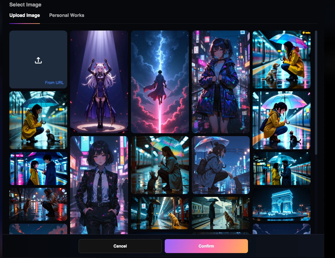Describe with AI is a feature in which you upload an image and the AI try to generate a natural language prompt by describing the image. If you click Describe AI ti will open your personal works or from URL to select an image for the AI to describe.