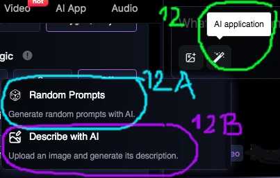 Random Prompts is to generate random prompts without any input (marked by number 12 A)
